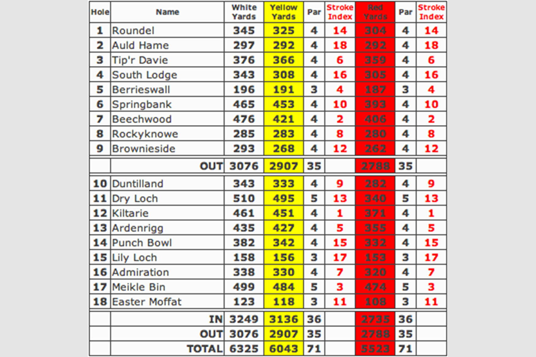 Elgin Golf Club Detailed Scorecard Course Database